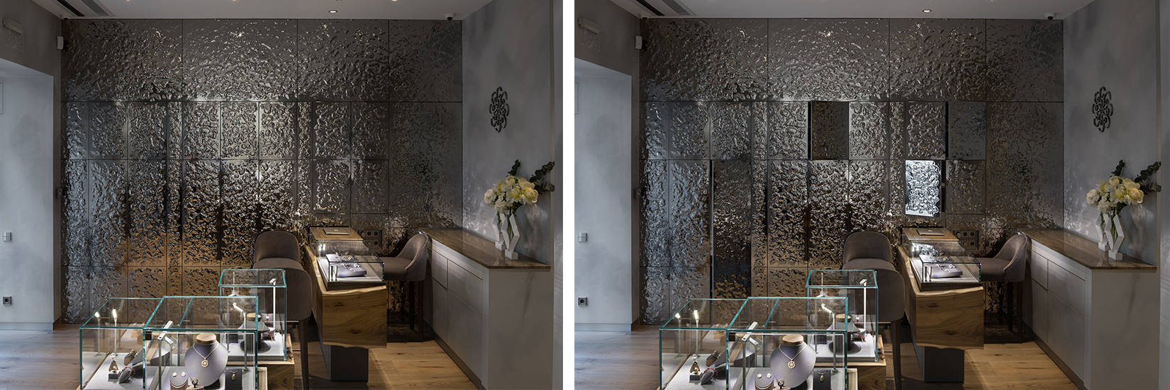С радостью делимся с вами фото недавно завершённого проекта для бутика ювелирных украшений Oberig.